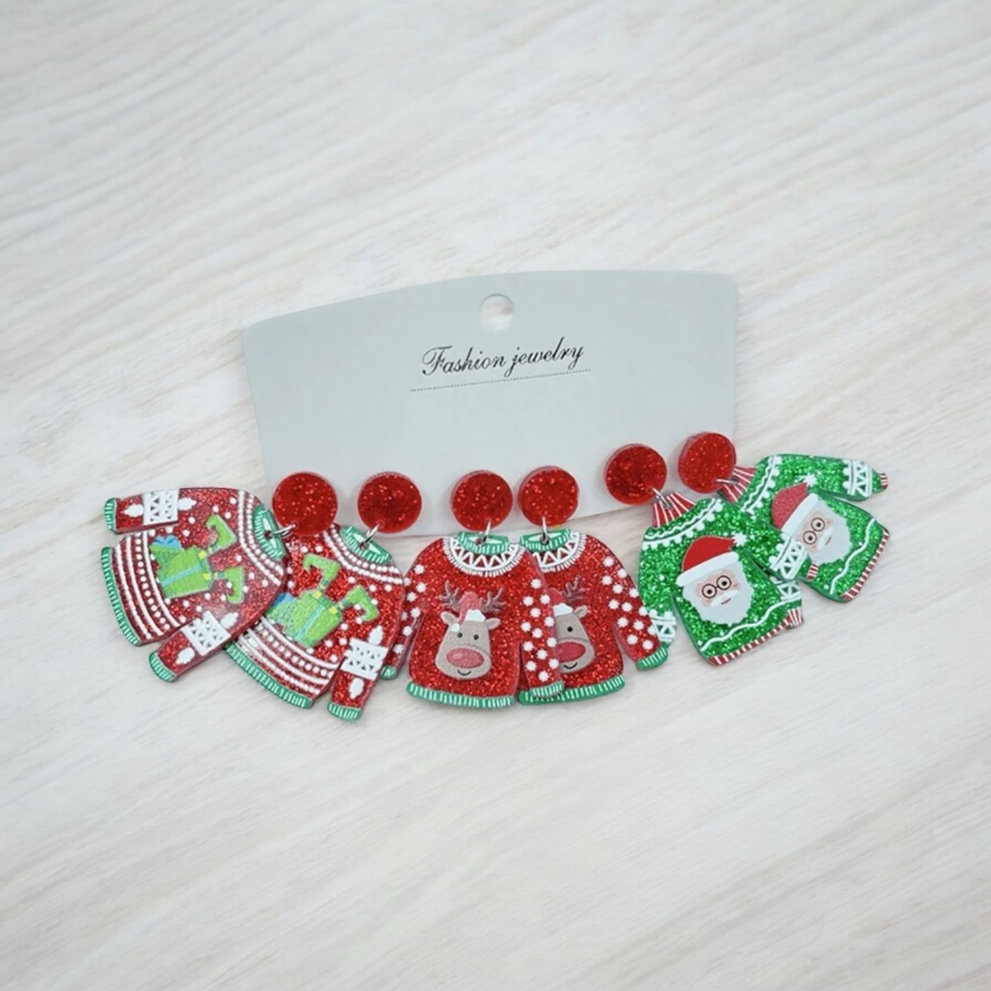 Festive Christmas Sweaters Trio Hanging Acrylic Earrings